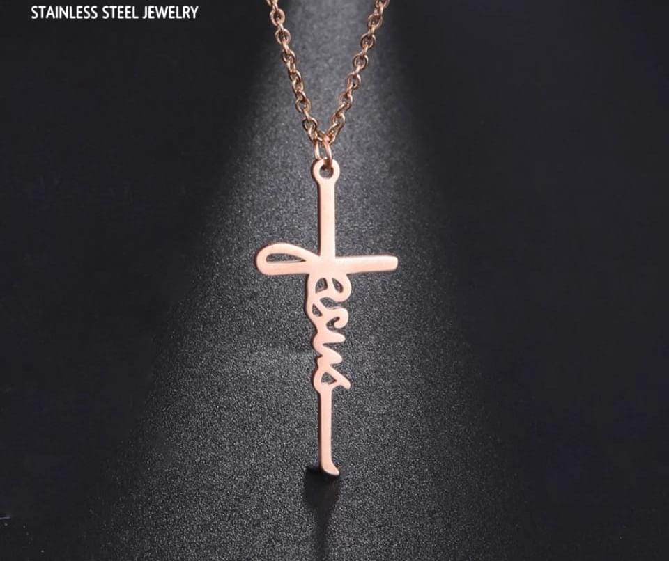 Haz tuyo hoy el Collar de Cruz con la Palabra JESUS 316L y lleva tu fe con orgullo y estilo.